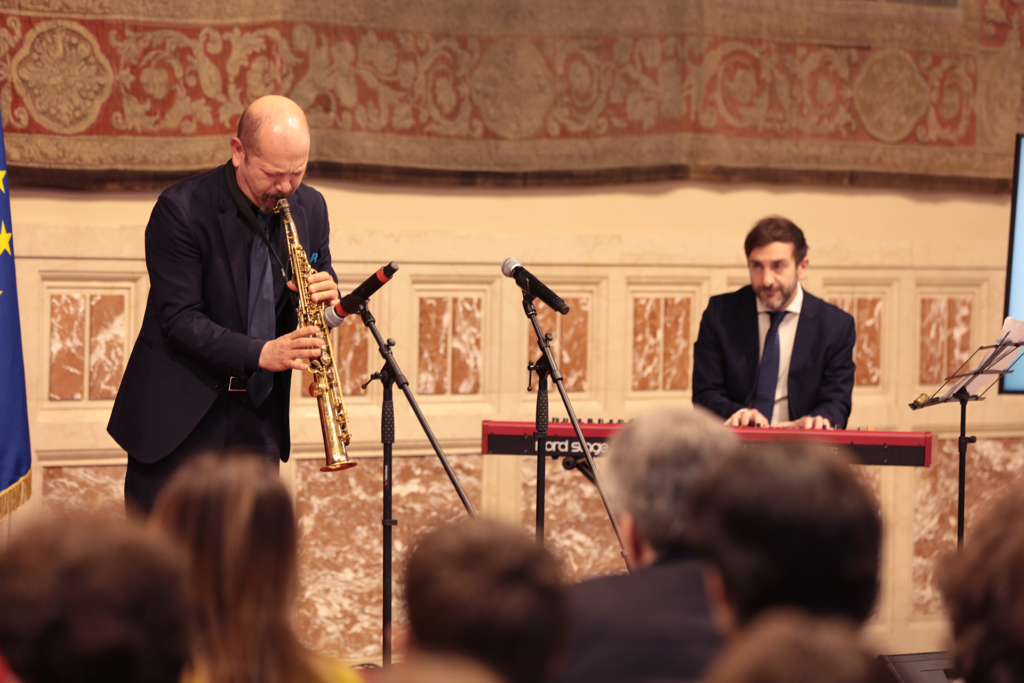 Il Presidente di AssoConcerti, Bruno Sconocchia, storico manager di Lucio Dalla, ha tracciato un ritratto vivido del cantautore, attraverso aneddoti e ricordi, mettendo in luce quanto la sua eredità continui a rappresentare un punto di riferimento imprescindibile per la cultura musicale italiana. A seguire, il giornalista e critico musicale Gino Castaldo ha approfondito la figura artistica di Dalla, con la partecipazione della Fondazione Lucio Dalla, a cui è stata consegnata direttamente dal Presidente della VII Commissione Cultura della Camera dei deputati, On. Federico Mollicone, la medaglia della Camera in memoria del grande artista: “Per lo straordinario contributo come musicista totale che ha saputo scardinare ogni confine tra generi e linguaggi. Per la sua libertà intellettuale che lo ha reso un interprete autentico dell’umanità e dell’Italia. Per la sua indiscussa grandezza artistica e musicale, in qualità di Presidente della Commissione Cultura e a nome del Presidente della Camera, consegno in memoria di Lucio Dalla alla Fondazione Lucio Dalla la medaglia della Camera dei deputati”.